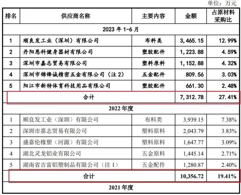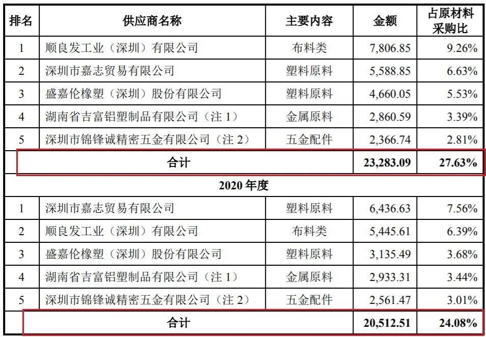 报告期内,香江电器向前五名供应商采购金额分别为2.05亿元、2.33亿元、1.04亿元、7312.78万元,占原材料采购比分别为24.08%、27.63%、19.41%、27.41%。