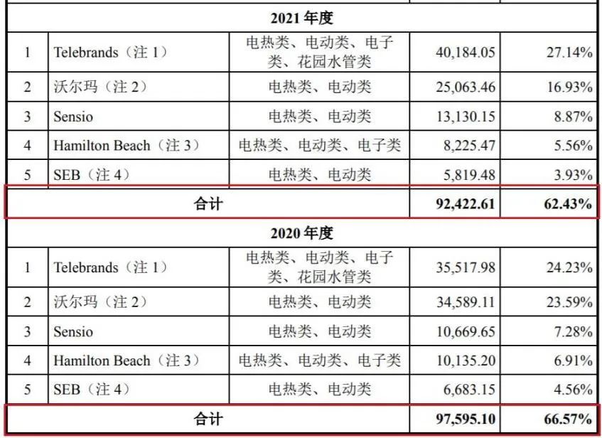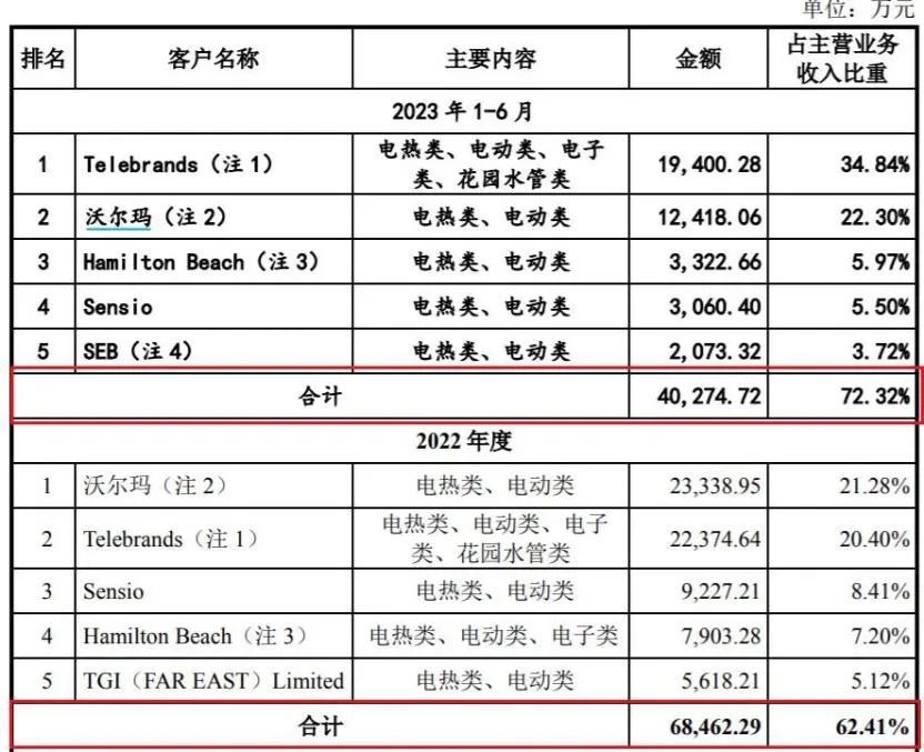 其中,Telebrands、沃尔玛、HamiltonBeach和Sensio长期位列前五大客户之中。