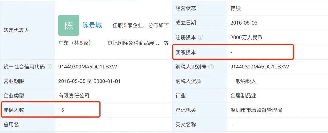 天眼查显示,顺良发注册资本2000万元,实缴资本不明,目前的参保人数为15人。