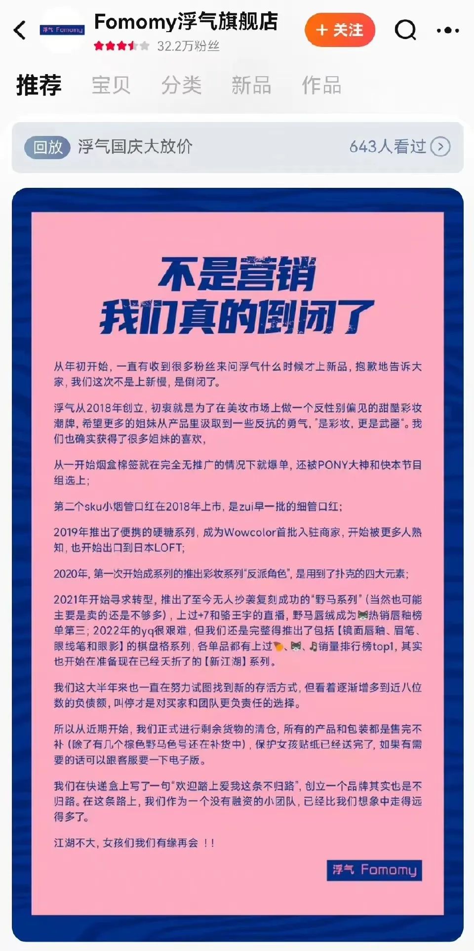 据悉,过去一年内,薏珂思、卡乐说和浮气三种同样走性价比路线的国货彩妆品牌陆续关停,浮气创始人在复盘总结时便认为,品牌的倒下与层出不穷的白牌抄袭品、昂贵的开模成本费用与昂贵的营销费用密切相关。