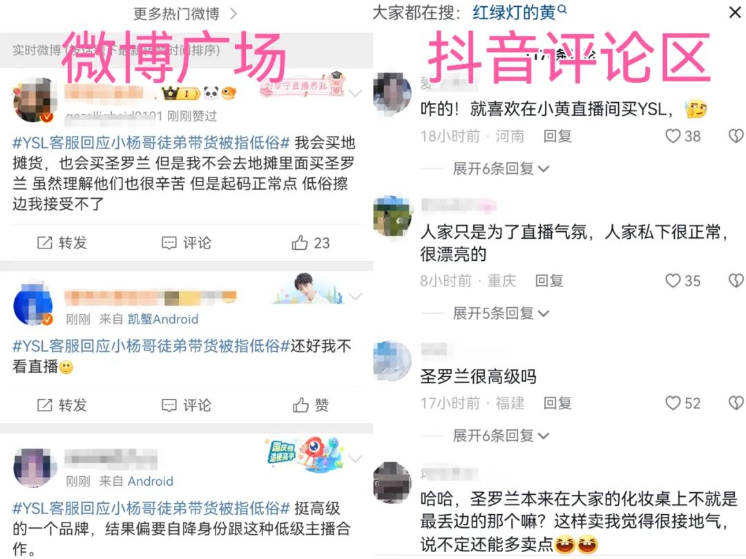 流量与骂声一同降临。直播结束后,YSL各渠道官方账号的评论区内出现了大量消费者的抗议,不少用户拿着主播披头散发的搞怪片段质疑品牌合作选择,主播也专程道歉回应“是我太low”,争执于10月27日登上热搜,再次引发新一波探讨。