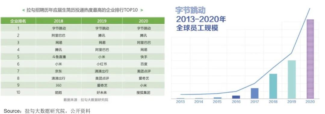 以字节为例,2020年全球员工数相比2019年直接翻倍,突破了十万人大关,字节HR常常形容自己的工作是“边开飞机边换引擎”。