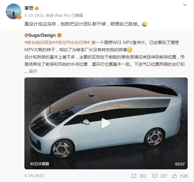 “李厂长”最近为了博流量有点拼,自从为理想 MEGA 预热以来,李想惨遭“打脸”,先是吐槽“网友的渲染图设计丑,实车这样干掉设计团队,然后跳楼”。