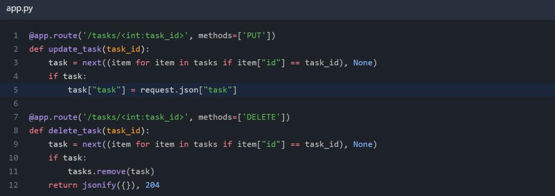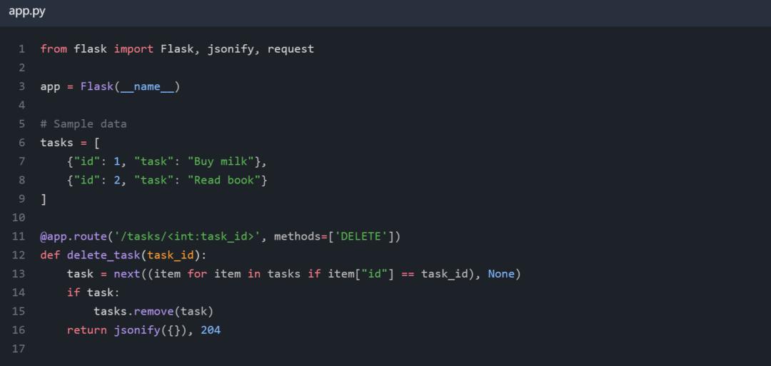 在本文中,我将使用以下简短的 Flask 服务器实现作为我们正在编辑的文件的示例。出于简洁考虑,我选择了一个简短的示例,因此对于这个特定示例,GPT-4 也许不会出现这些错误,但在较大的文件中经常会出现类似的错误。