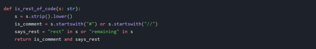 现在,我们只需撤销每个删除后面带一个形如 + # Rest of test 注释的部分。具体来说,我们使用以下方法检查这些注释: