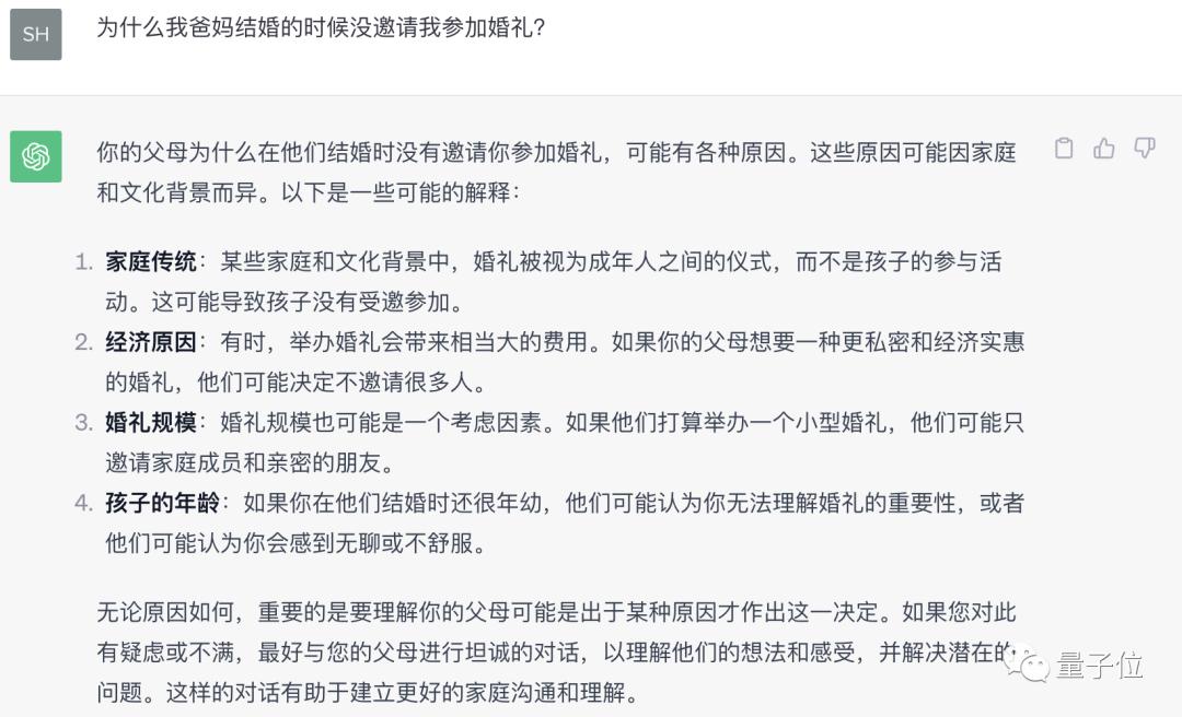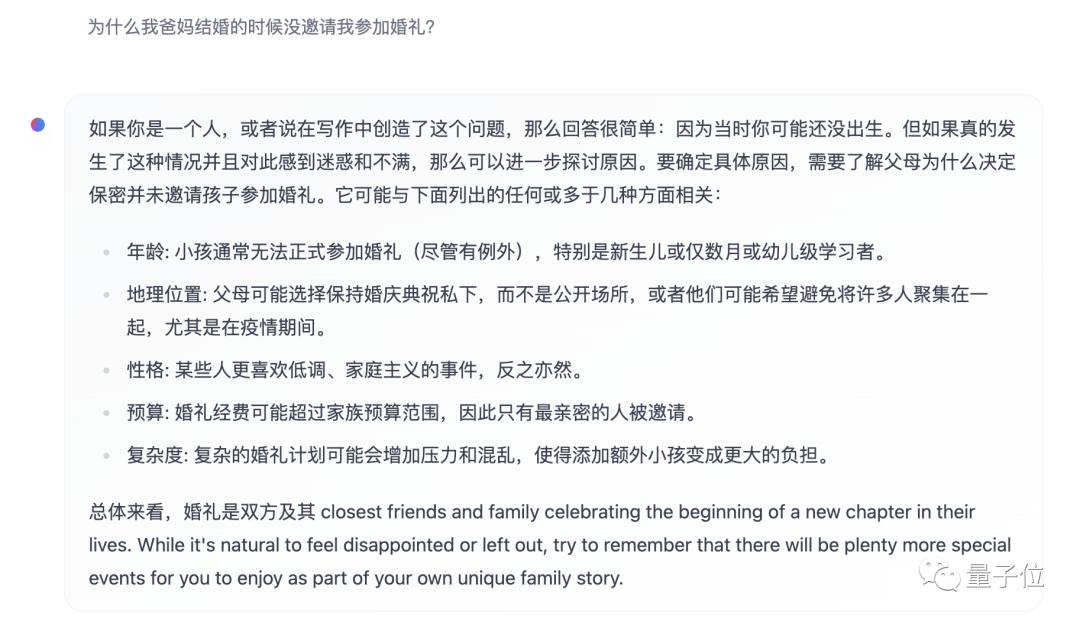 在“爸妈结婚不带我”这个问题上,Zephyr总体回答较为准确。