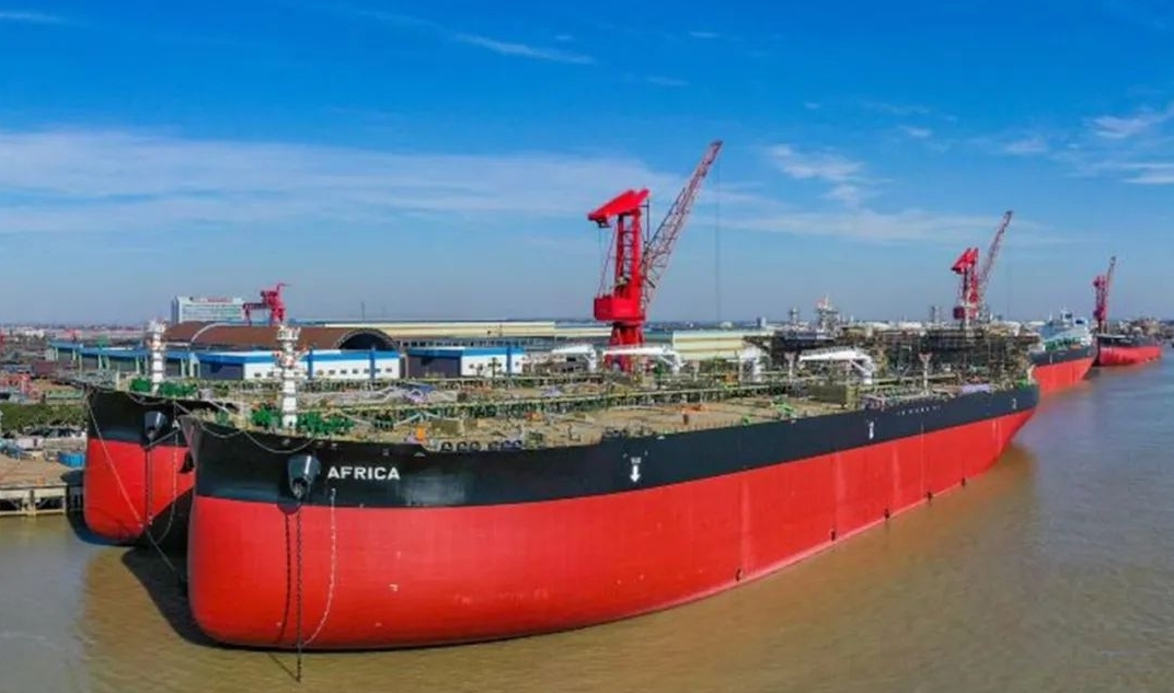 在2022年全球船厂排名中,靖江两家船厂的船舶修正总吨分别排名全球第6和第7。