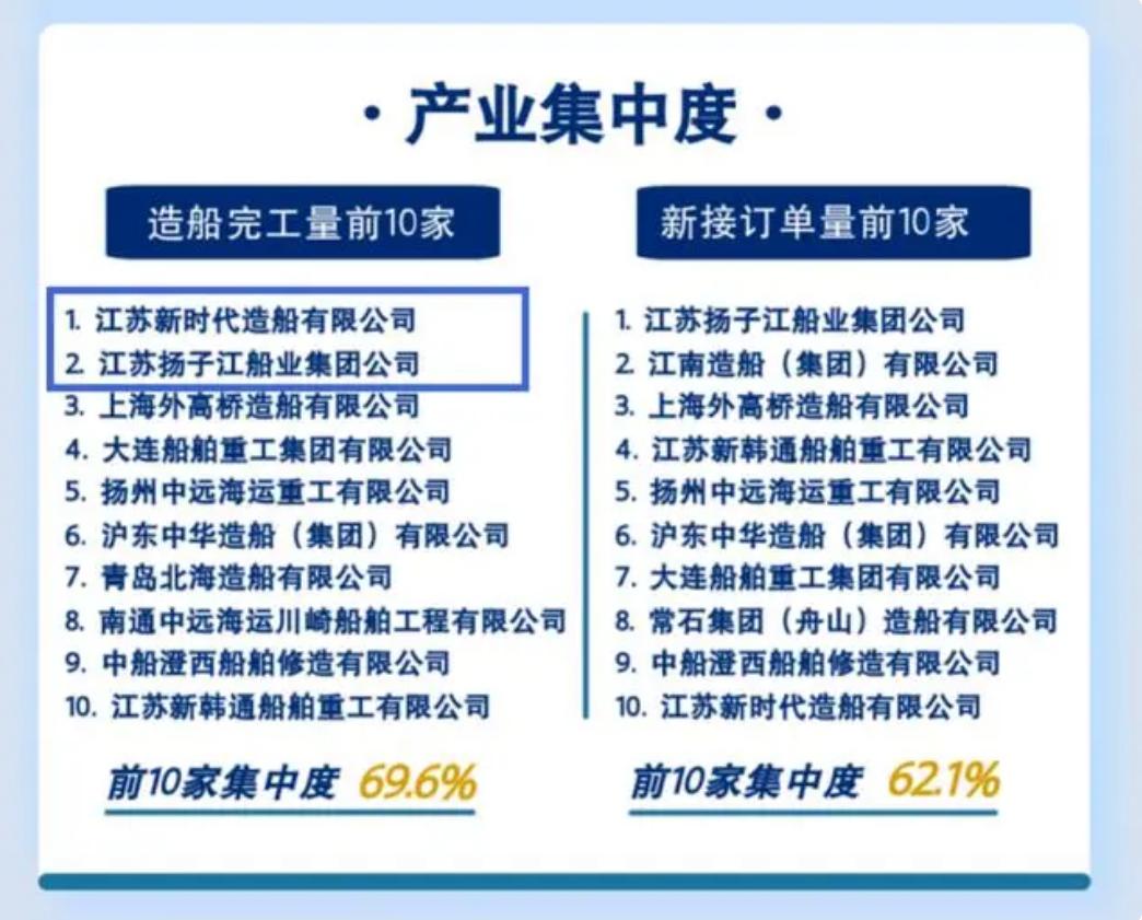 这其中,来自靖江的扬子江船业继续保持全国手持订单的第一,另一家新时代造船的完工量则排名全国第一。