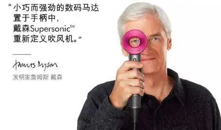 上世纪 90 年代,詹姆斯 · 戴森到美国宣传 DC01 真空吸尘器,讲述自己在 5127 次失败后终于发明成功的励志故事,一下抓住当时美国“科技美学”的市场趋势。此后,詹姆斯 · 戴森以“首席工程师“身份亲自出镜、对外宣传,更是一心选择工程师作为品牌的代言人,避免明星代言,维持“科技美学”的一致调性。