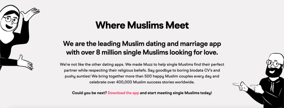 因此,自 2010 以来,帮助穆斯林用户找到彼此的网站和 App 一直在持续发展中,甚至已经出现了 Muzz 等具备一定体量的代表性产品。