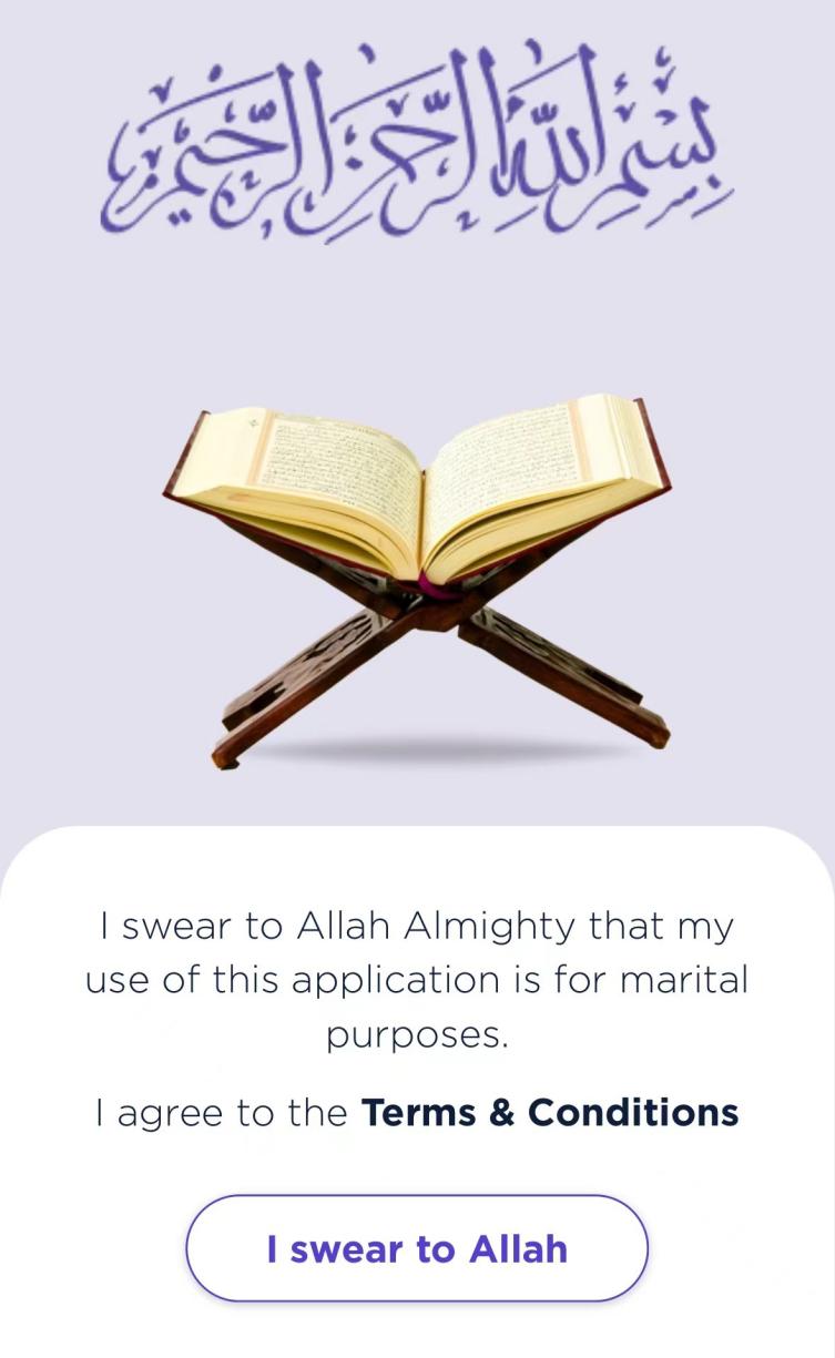 另外,还有一套非常神奇的操作是“要求用户用真主的名义发誓,自己填写的所有资料均为真实,自己在认真寻找婚姻伴侣”。