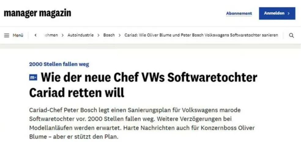 CARIAD裁员2000人,大众“软件之痛”仍在发酵