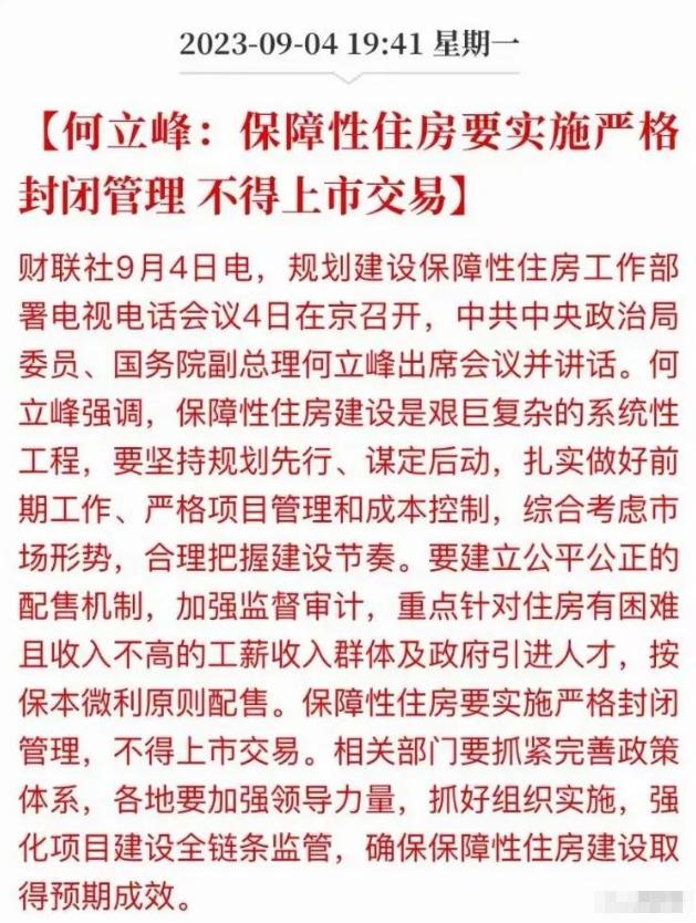 封闭流转,一方面能杜绝寻租或套利,使得房源分配给最需要的人群;另一方面,也能避免后期套现导致二手房挂牌量大幅度增加,冲击商品房市场。