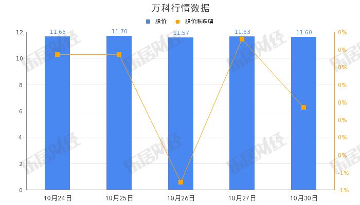 截至10月30日,万科(000002.SZ)股价收盘报11.63元,跌0.26%,总市值1,383.96亿元。