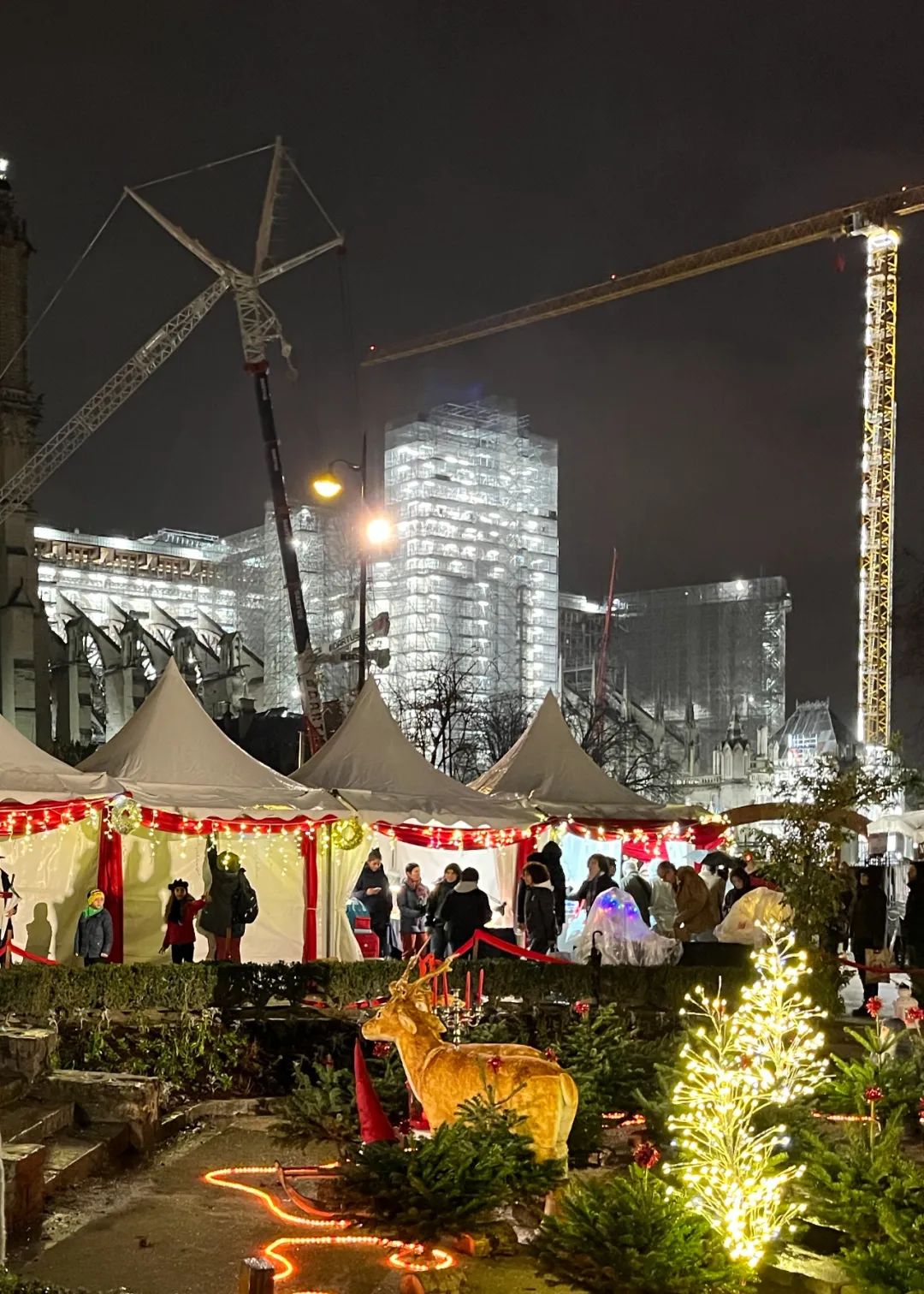 △2022年圣诞夜,巴黎圣母院工地灯火通明。(图/文心 摄)