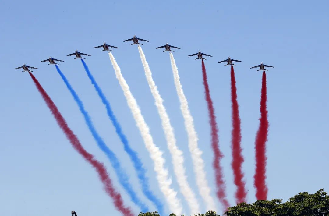 △2018国庆阅兵仪式上“搞错”国旗颜色的飞机,增加了法国人“不靠谱”的刻板印象。(图/视觉中国)