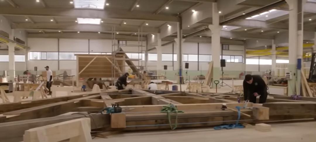 法国林业全行业从2021年年初开始挑选树木,在当年年底运送至全法45家锯木厂做切割、储存、晾晒。其中,用于制作塔尖基座的是8棵直径超1米、高度超20米的巨型橡树,经打磨并预先组装后,才在2023年运送至圣母院,作为一个整体进行安装。