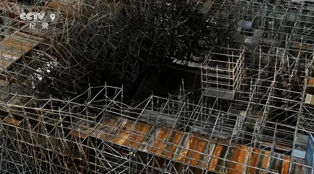 △拆除脚手架是一项极其复杂而艰巨的任务。(图/纪录片《修复巴黎圣母院》)