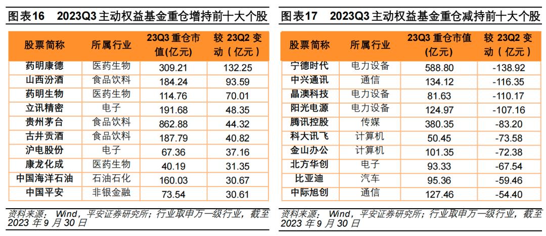 据平安证券统计,截至2023年三季末,主动权益基金股票仓位中位数89.61%,较上季末下降0.05个百分点。