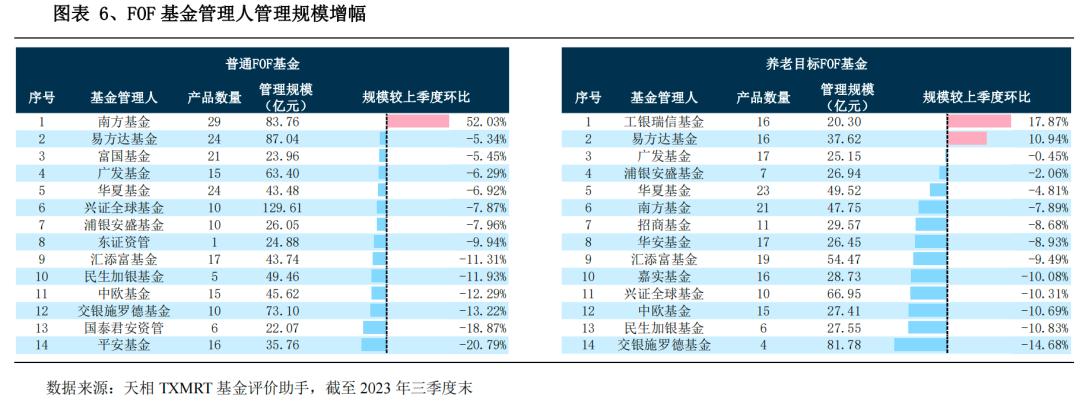 总体来看,报告期内共有68家基金管理人布局了普通FOF基金,54家基金管理人布局了养老目标FOF基金。