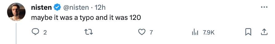当然,也有网友认为这可能是个「拼写错误」,或许实际是 120B(1200 亿),至少 120B 和 GPT-3(175B)是一个数量级。