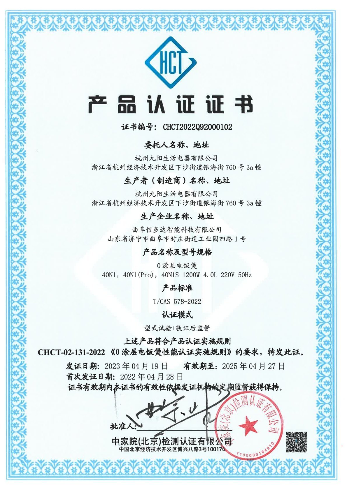 九阳40N1S获得国内0涂层电饭煲权威认证