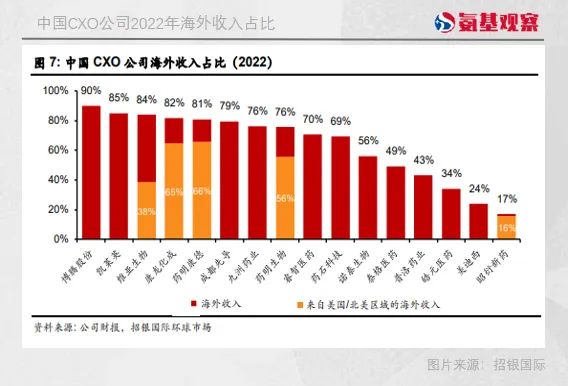 除了国内,全球医药融资和研发需求对于中国CXO业绩也有着重要影响。毕竟,中国CXO已经深度融入全球医药研发产业链,不少企业有超过一半年的收入来自海外。