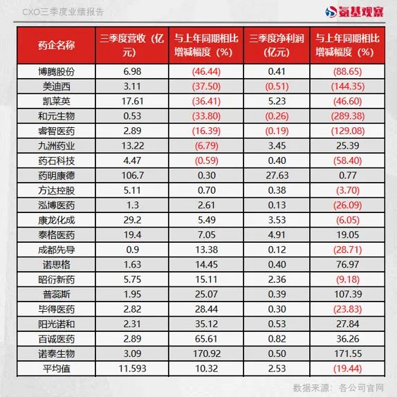 上半年CXO板块就已经初现颓势,到了三季度,业绩增速进一步下降。