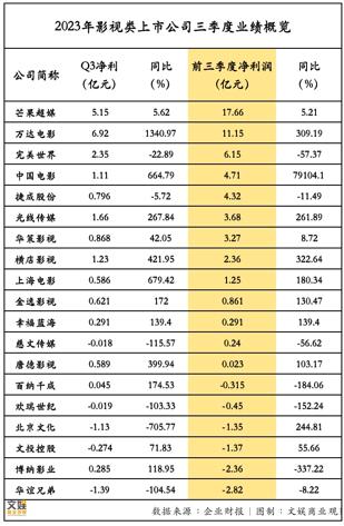 以剧集为主要业务的上市公司,多数盈利能力不强,其中手握《莲花楼》的欢瑞世纪更在第三季度交出了一份营收、利润双降的成绩单。与此同时,电影市场也不乏失意者,典型如华谊兄弟、博纳影业。