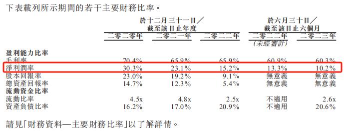 尽管毛利率保持稳定,净利率却在逐年走低,2021年、2022年、2023年分别是30.3%、23.1%、15.2%,招股书给出的解释是业务受到疫情影响。在疫情过后,2023年上半年的净利率是10.2%,却低于2022年的13.3%。