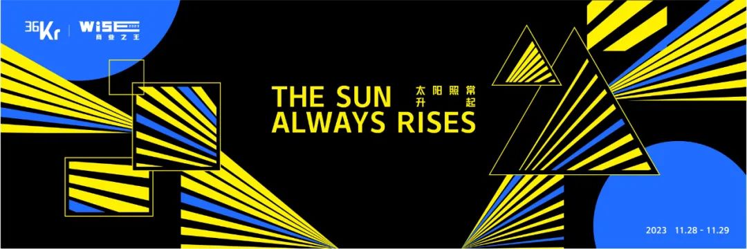 今年,也是WISE大会新十年的开局之年。本次WISE2023 商业之王大会,主题定为“太阳照常升起”。从表层含义来看,大会在强调全球经济新常态下的光明与希望,以中国而言,经历了超速发展的30年,当下进入平稳缓增的时代,是经济发展的必经之路。而从深层来看,大会也表明了依然看好中国商业的韧性与潜力,无论发生什么,太阳总会照常升起,面对交替中的经济周期,信心比金子更重要。再往深层挖掘,则可以看出36氪对中国企业的期待,每个时代都会有属于这个时代的“商业之王”冉冉升起,优秀的企业,往往能在变局之中寻找到创新突破的契机,成为下一个“商业之王”。