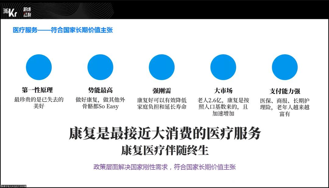 张继宇博士 :大家的消费习惯不同,比如说支付宝业务在国内做的非常好,但是在海外做的不好,是因为他们的支付体系已经建立。但为什么在中国做康养这个事情特别好,是因为中国的供给侧不足,服务人群少,但是大量人群需要康复。