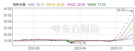 截至10月31日收盘,高新发展报38.50元/股,最新A股总市值达135.6亿元。