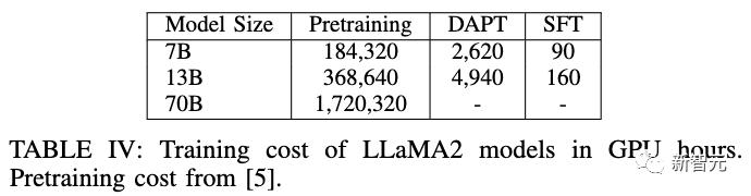 所有模型均使用128个A100 GPU进行训练。研究人员估算了与ChipNeMo领域自适应预训练相关的成本,如下表所示。