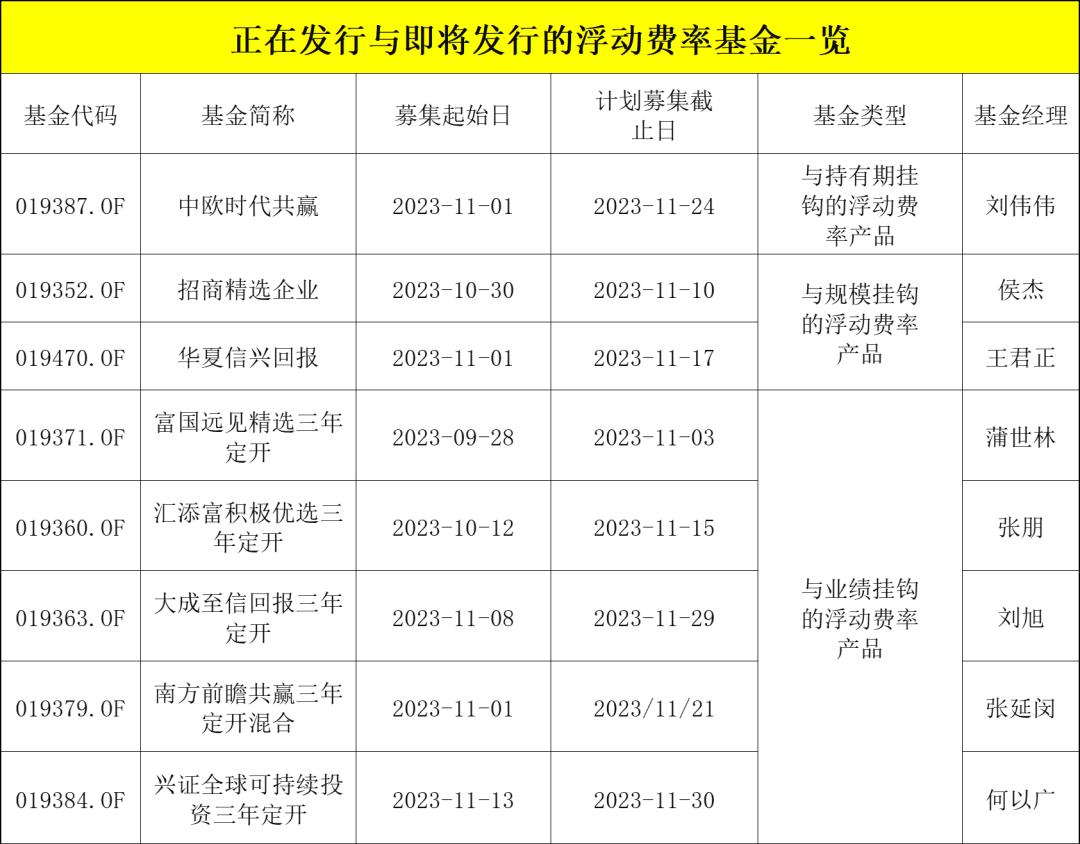除了已经结束募集的交银瑞元、景顺长城价值发现外,后续还有多只浮动费率基金进入发行期。