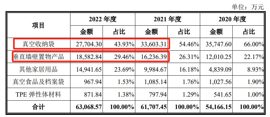 在产品方面,真空收纳袋是其支柱产品,在2022年贡献了43.93%的收入,第二大产品为垂直墙壁置物产品。