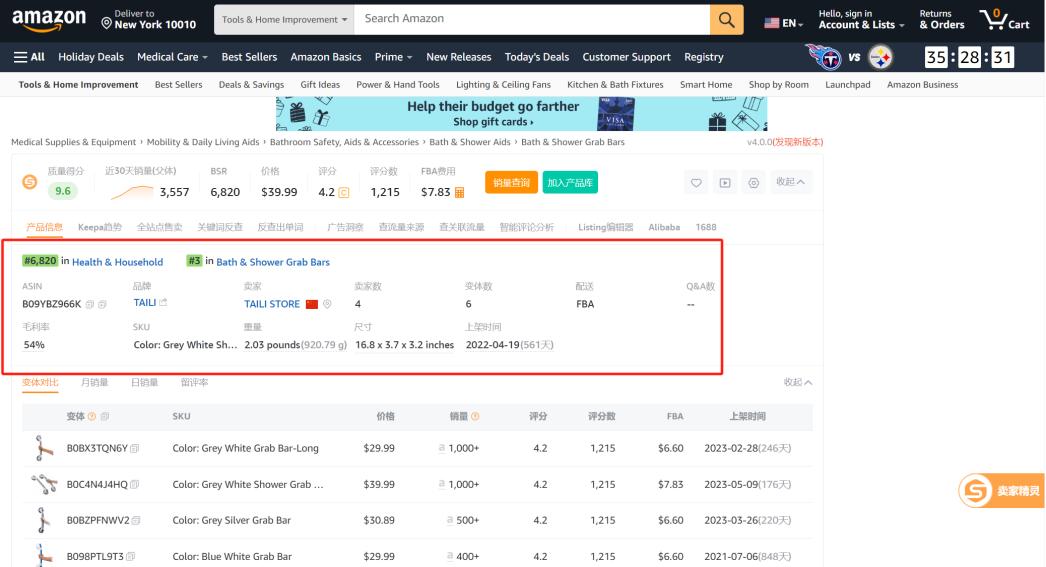 今年一季度,其旗下一款金属色的安全扶手在海外电商平台卖得非常火爆。这款产品最初以白蓝配色为主,通过市场调研后,专门为欧美人定制了灰白、金属色系,上架后就大受欢迎,位列海外电商平台TOP3。