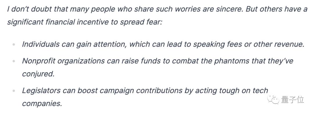 但,他认为,一部分人非常卖力地传播这样的担忧其实只是为了“钱”,比如: