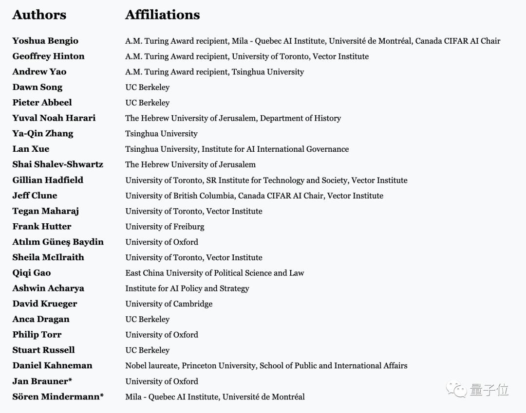 就在前几天,深度学习三巨头之二Bengio和Hinton,已联合姚期智、张亚勤等人工智能大拿,发表了一封公开信《在快速进步的时代管理人工智能风险(Managing AI RIsks in an Era of Rapid Progress)》。