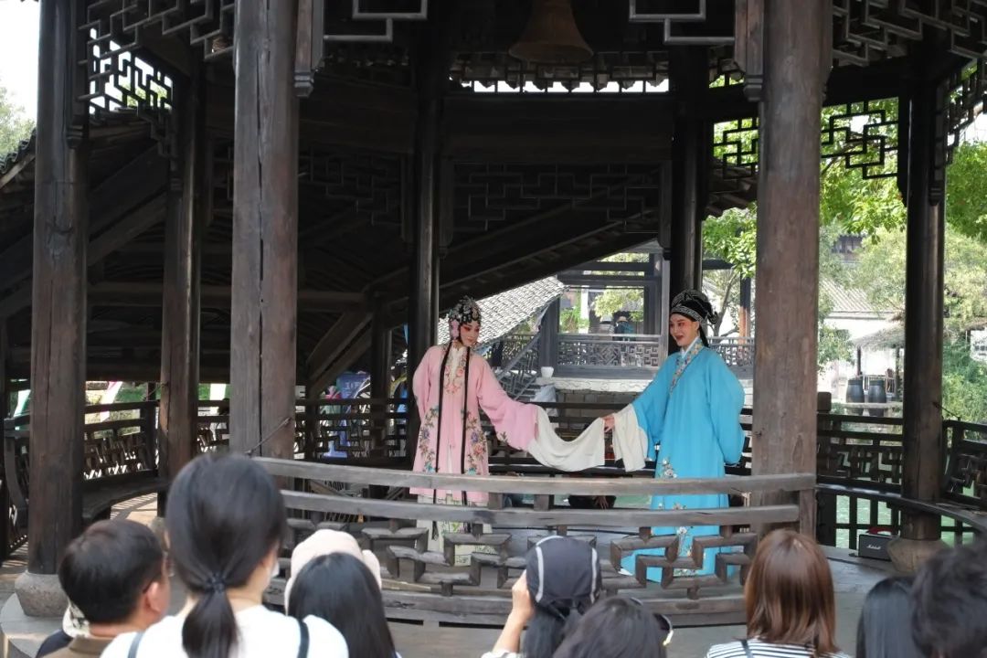 表演者跟观众融为一体,共同构成了这个江南小镇的风景。这也是陈向宏最喜欢的活动,据他介绍,来到乌镇的年轻人,看戏的是少数,很多都是在感受这种氛围。