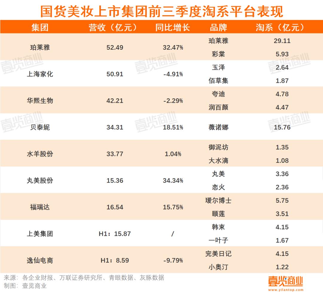 万联证券研究所显示,珀莱雅旗下珀莱雅和彩棠两个品牌前三季度在淘系平台总GMV分别是29.11亿及5.93亿,而此前在老牌国货彩妆赛道一直有着不错的成绩的完美日记,前三个季度淘系也仅有4.15亿的GMV。