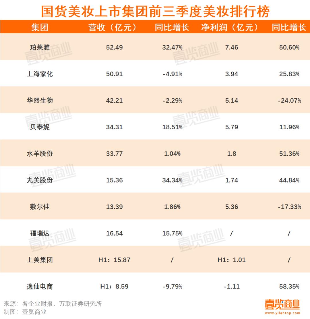 壹览商业统计10家国货美妆上市企业的最新数据发现,前三季度,包括未披露三季度季报的上美集团及逸仙电商在内,依然有5家企业完成了营收及净利润双增长。