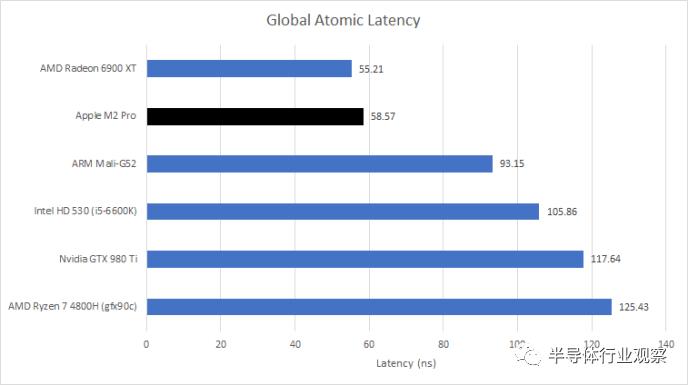 M2 Pro 的 iGPU 可以很好地处理这一问题,延迟为 58.57 纳秒。它与 AMD 的 RDNA 2 相当,并且比英特尔和 AMD 的旧款 iGPU 快得多。