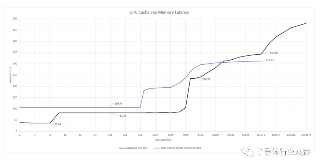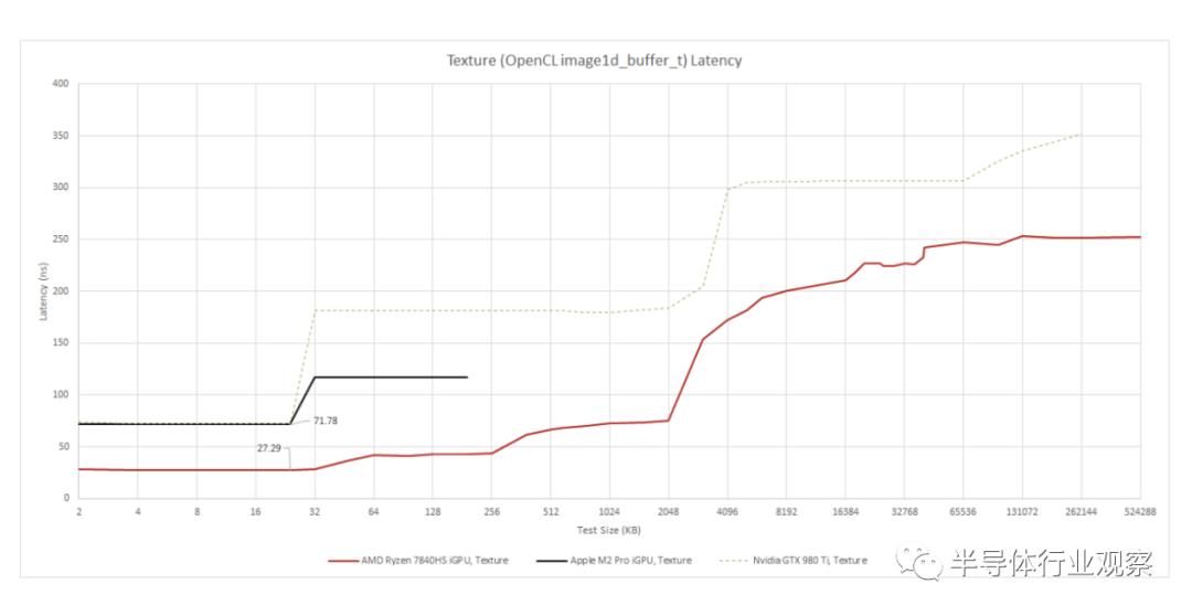 OpenCLimage1d_buffer_t允许访问容量为 24 KB 的不同一级缓存。M2 Pro 可能有一个单独的 24 KB 纹理缓存。访问此缓存的延迟与 NVIDIA Maxwell 架构上的延迟相似。