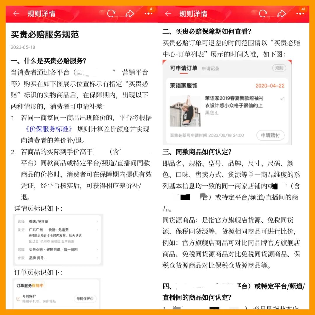 图 | 某平台买贵必赔服务规范