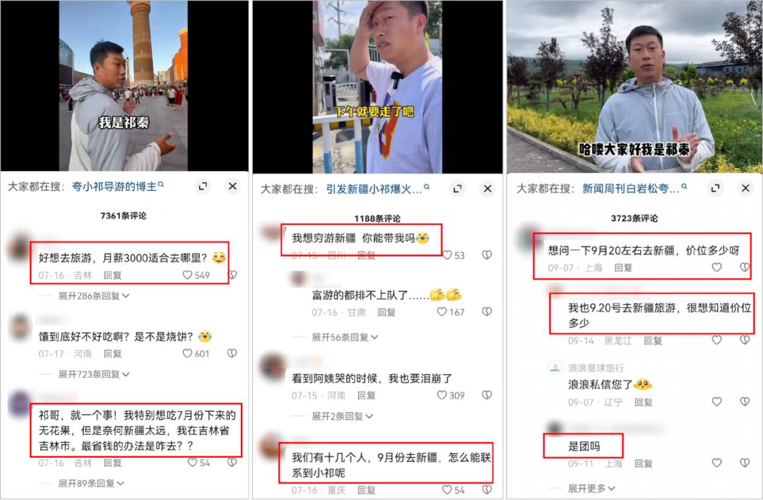导游小祁出圈以后,他作品中和新疆美景无关的视频,数据都相对一般。看起来,用户更多的是将小祁当成“询价问价”的窗口。