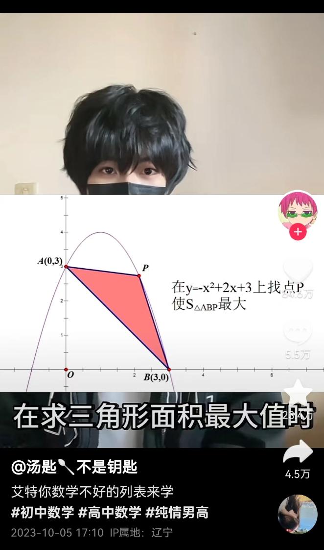 但是没过多久,比@上海英语任 更极端的反差感老师达人就出现了,@汤匙不是钥匙 凭借着二次元的外表,数学老师兼出题人的身份“狠狠”震撼了一波网友,目前粉丝数量已经超过@上海英语任。