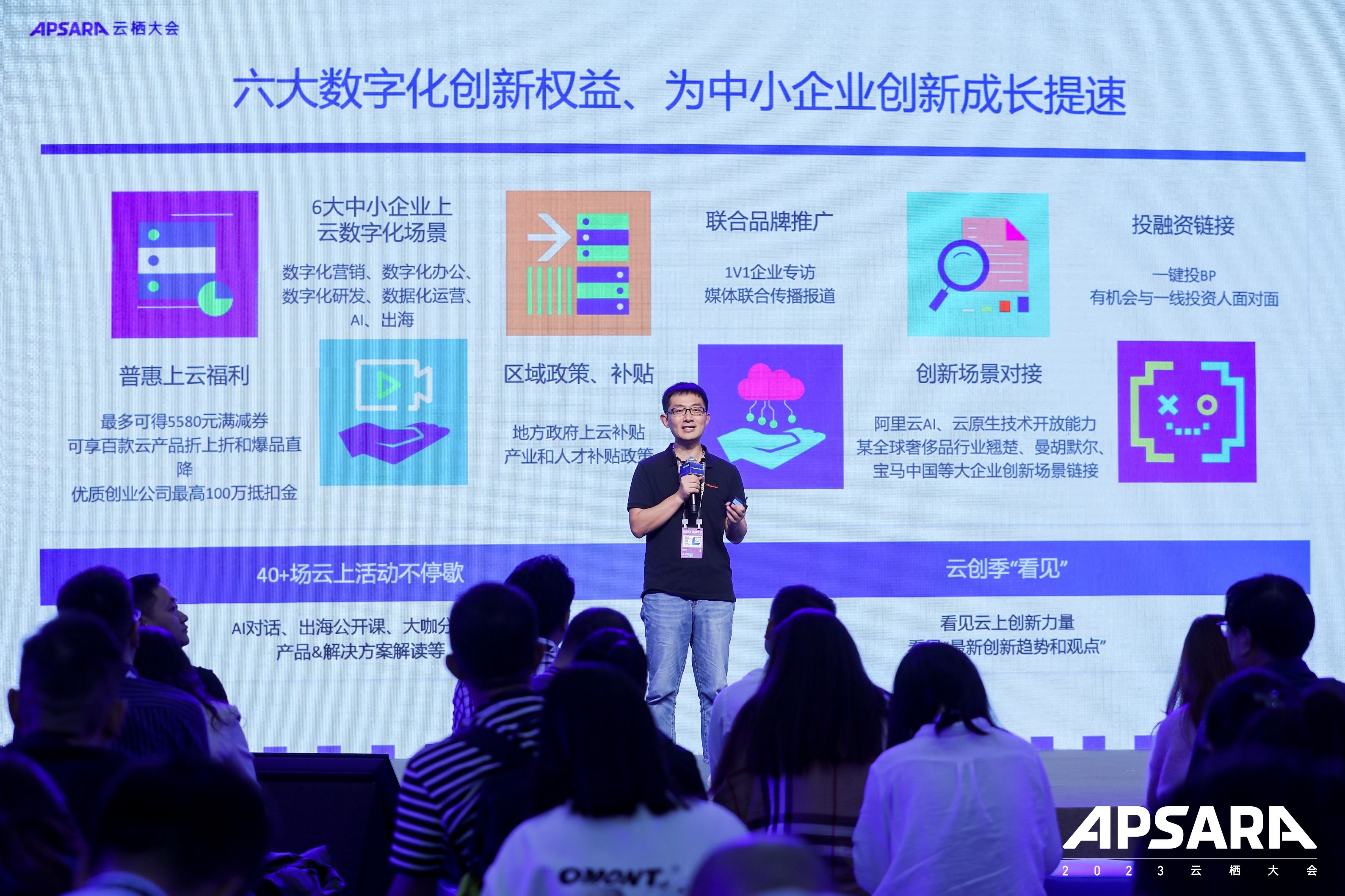 为加速中小企业创新成长,阿里云在云栖大会现场推出2023金秋云创季活动,阿里云创业孵化事业部副总经理焦志良现场带来《金秋云创季——中小企业重磅上云权益及内容解读》的分享,现场同步发布看见云上创新力量——企业云上最佳实践征集活动。企业上云不仅享有满减优惠券、大额抵扣金、区域上云补贴、热门产品折扣等多重权益,同时还有四十多场精彩的专题活动供中小企业参与。