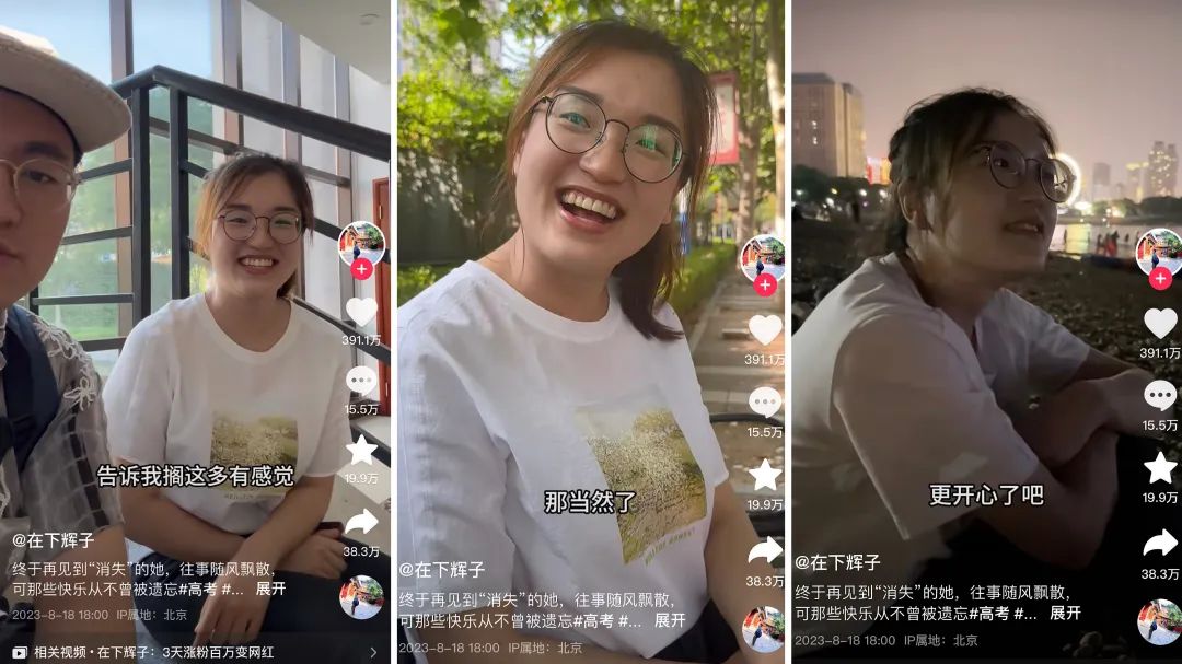 7月15日,@在下辉子 以自己的初恋做为开篇,正式开启了“老同学盲盒”系列内容。每期视频中,他都会先喊出固定的开场白:“高考考得最好的那些人,现在过得好吗?毕业十年,我把我的同学做成了盲盒,无论你在哪里,我都想去看看你。”随即便蒙着眼睛、拿着玩具手枪向挂在墙上的巨幅随机“命中”一名老同学,而后去实地探访并记录下他们毕业十年后的生活现状。