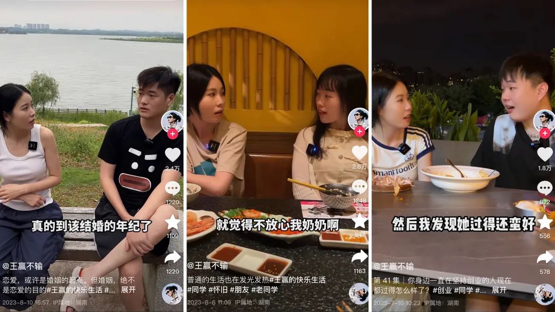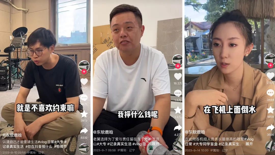 在他的视频中出镜的同学,基本都是大专毕业,毕业之后留在家乡发展,他们有的是小学老师,有的开了网店、有的在煤气公司上班,有的是铁道线路工……相比辉子、@酸菜鱼儿的 同学,@东软鹿晗 视频中呈现出的生活现状似乎更接地气、更真实,也更接近普通人的生活,容易引起用户的共鸣,因此,前两期视频的数据表现还算亮眼。但或许也正是因为他们的生活“普通而真实”,且同质性太强,让用户逐渐失去了新鲜感,账号后期视频的数据表现有了明显下滑。